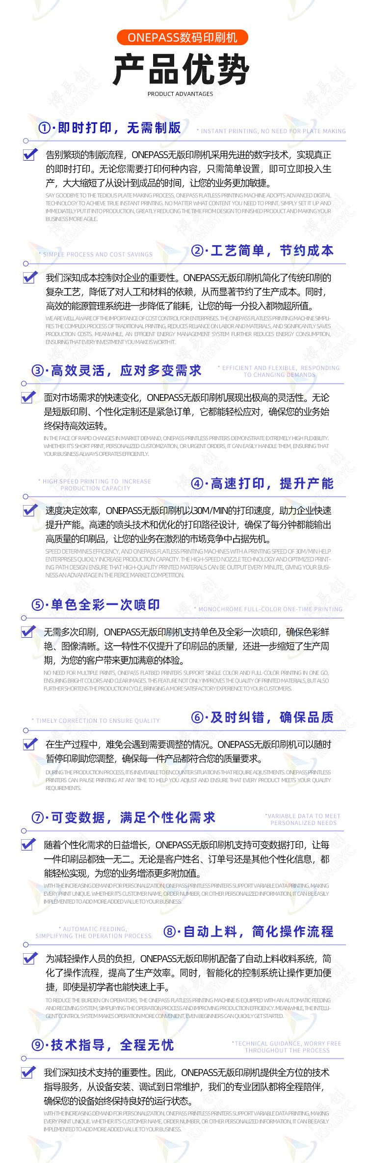 產品介紹:博易創無紡布袋數碼打印機采用惠普品牌噴頭。進料寬度為80cm,打印寬度21.5-64cm。搭配易秒干速干墨水,不需要制版就能電腦一鍵完成印刷。適合小批量無紡布生產廠家。